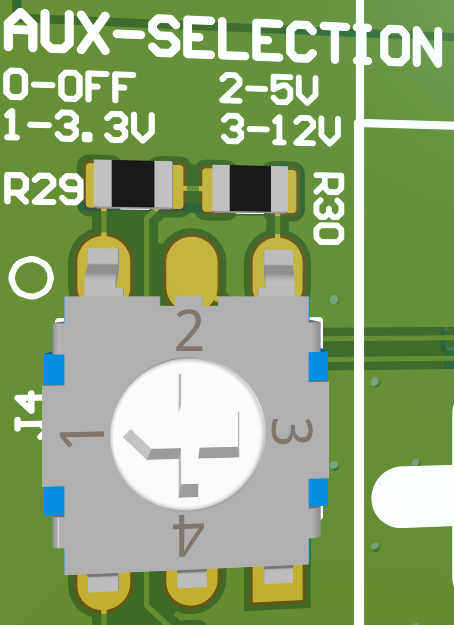 The output voltage can be selected between 3.3V , 5V and 12V.