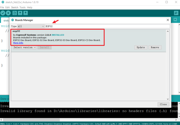 Adding ESP32-S3 to Arduino with Board Manager #