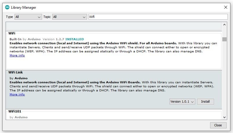 Open the library manager in Arduino, search for Wifi, and click install.