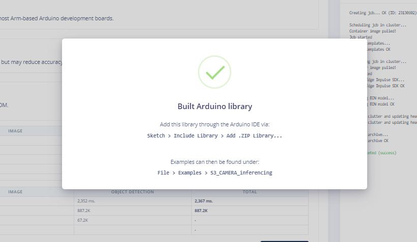 After training, go to the Deployment tab and select ESP32 to export your model as an Arduino library.