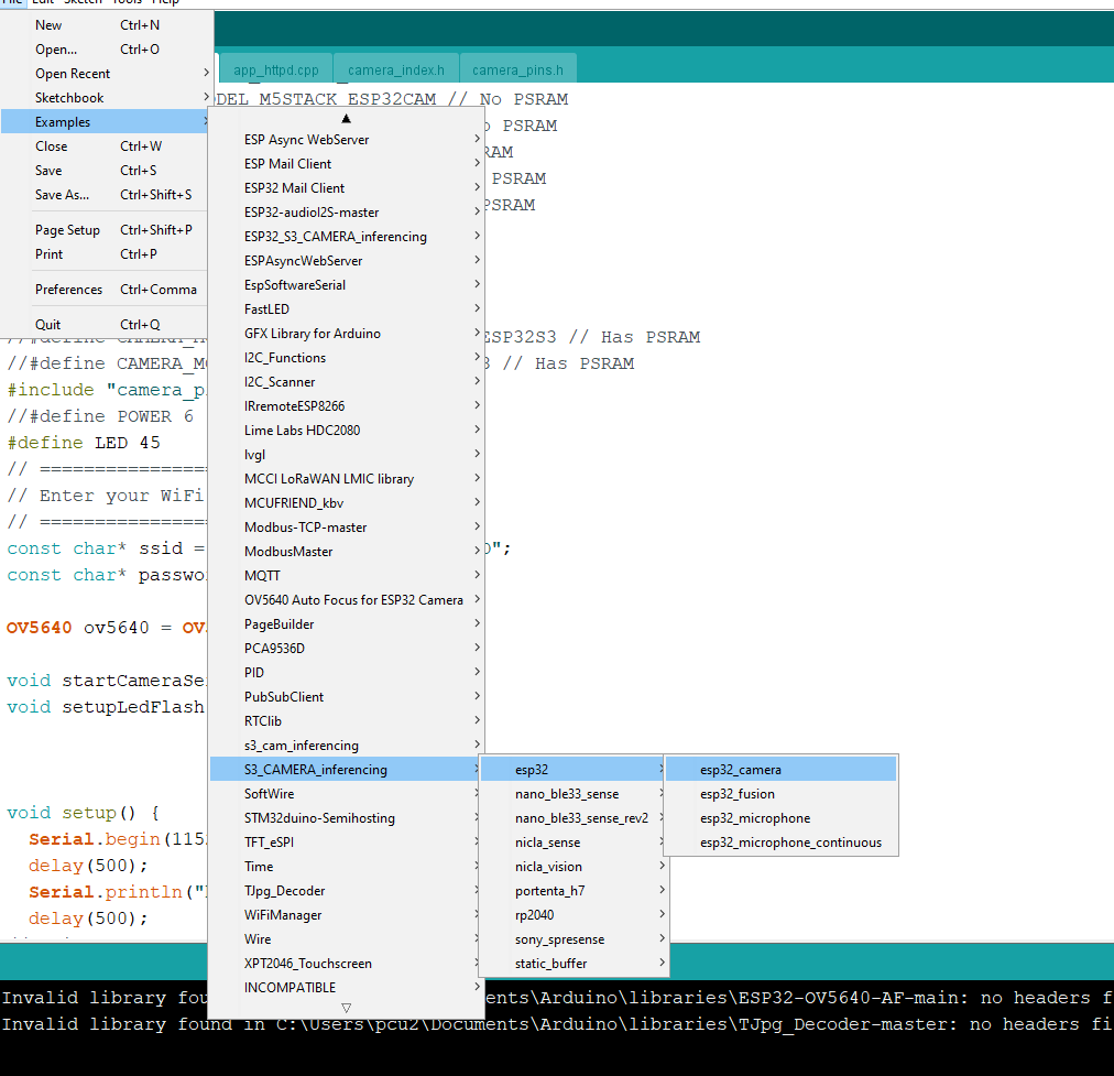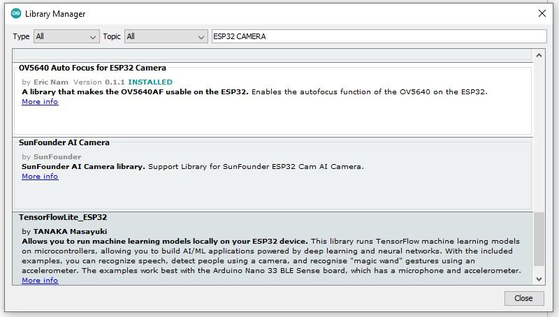 Open the library manager in Arduino, search for OV5640 Auto Focus for ESP32 Camera, and click install.