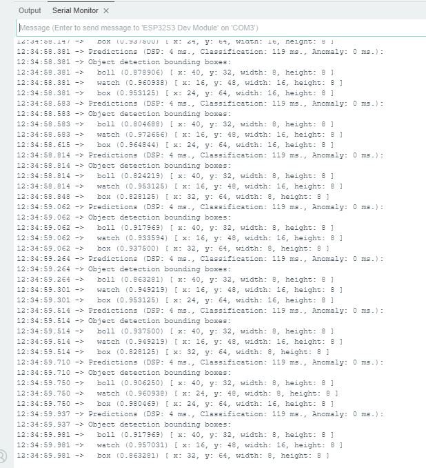 }Upload the code to your ESP32-Cam, and you should be OK to start classifying your objects. You can check it on Serial Monitor.