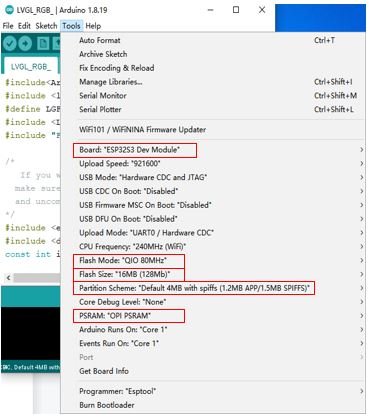 Copy the lv_conf.h of the LVGL Demo/3_3-4_TFT-LVGL-Widgets/LVGLconfiguration replacement file and replace it under the Arduino library file, it must be in the same root directory as the library TFT_eSPI. If there is an existing lv_conf.h file please replace it.