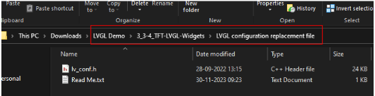 Download the LVGL Demo folder for the test program, essential libraries, and files from the link below.