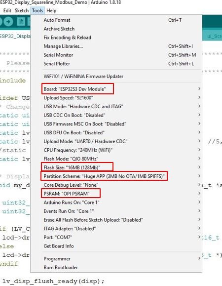 Note that partition scheme for the Lvgl music example should be Huge APP (3MB No OTA/1MB SPIFFS)