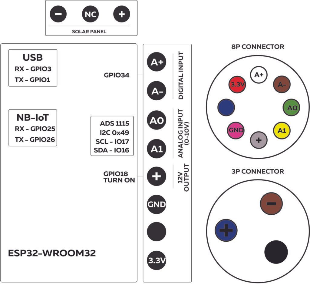 | Inputs and Outputs | 1 x Digital Inputs 2 x Analog Inputs 0-10V 1 x12V/500mA Output |