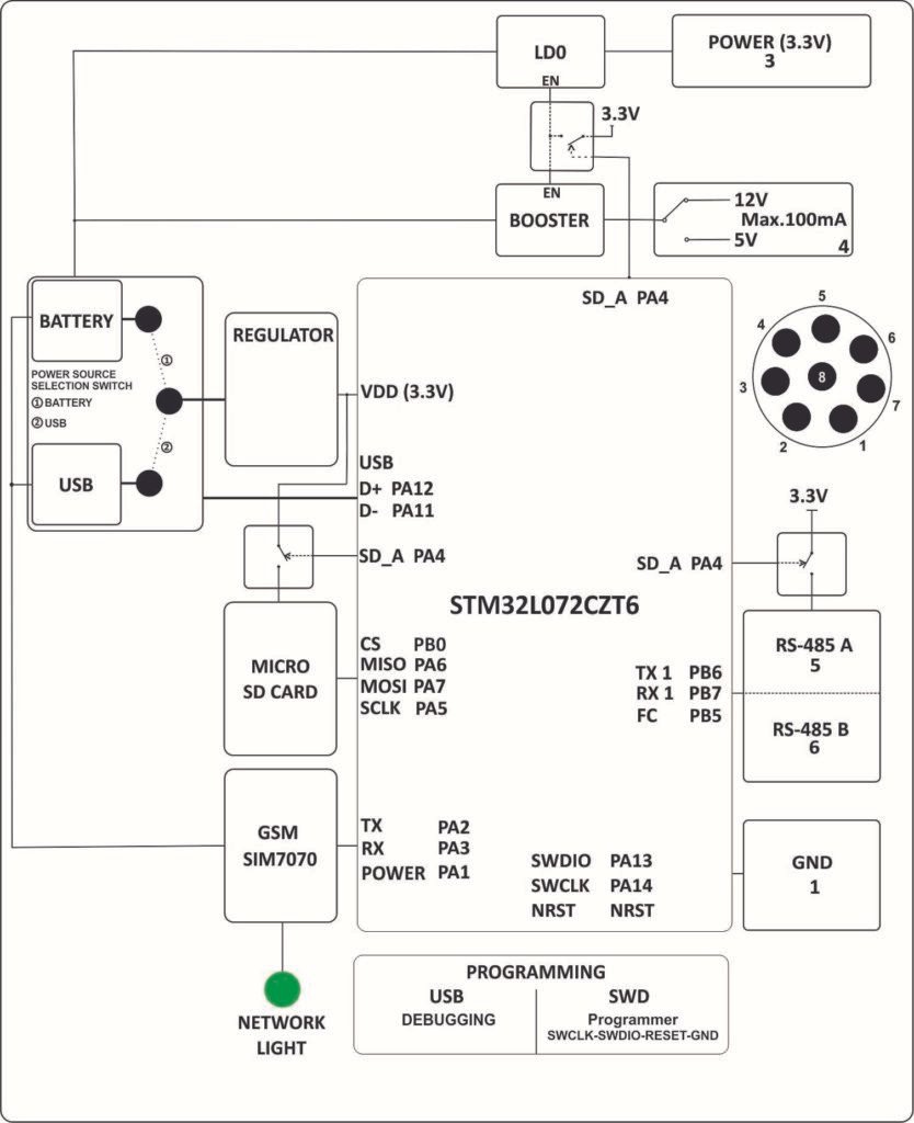 Built on the ultra-low-power STM32L072CZT6 MCU, the device supports multi-network cellular connectivity for seamless data transmission. It also integrates directly with industrial RS-485 interfaces, making it ideal for use in utilities, environmental monitoring, agriculture, and industrial asset management.