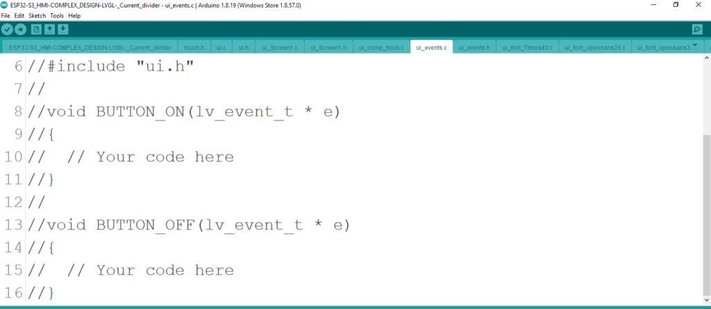 Next, open the ui_screen1.c file and update the switch events as shown below.