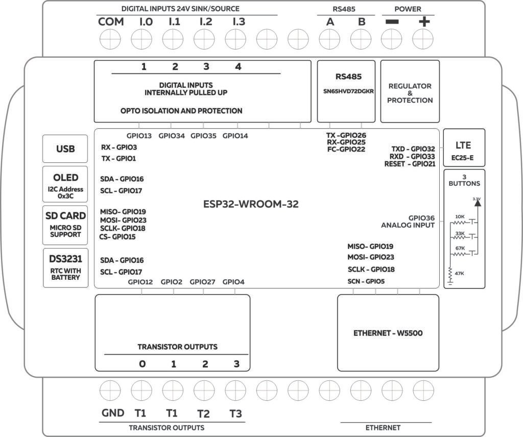 | Terminal Arrangement | Digital Input 0 – GPIO13 Digital Input 1 – GPIO34 Digital Input 2 – GPIO35 Digital Input 3 – GPIO14 ![]() |