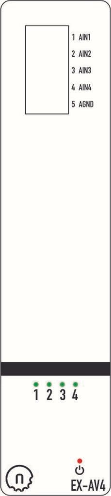 The NORVI X-AV4 is a 4 x Analog Inputs Expansion module designed for the NORVI X modular controller platform.