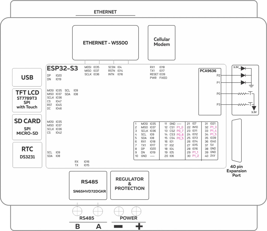 | 4 | INTN – Ethernet | IO4 | I/O/T (Yes) | ADC input, touch pad |