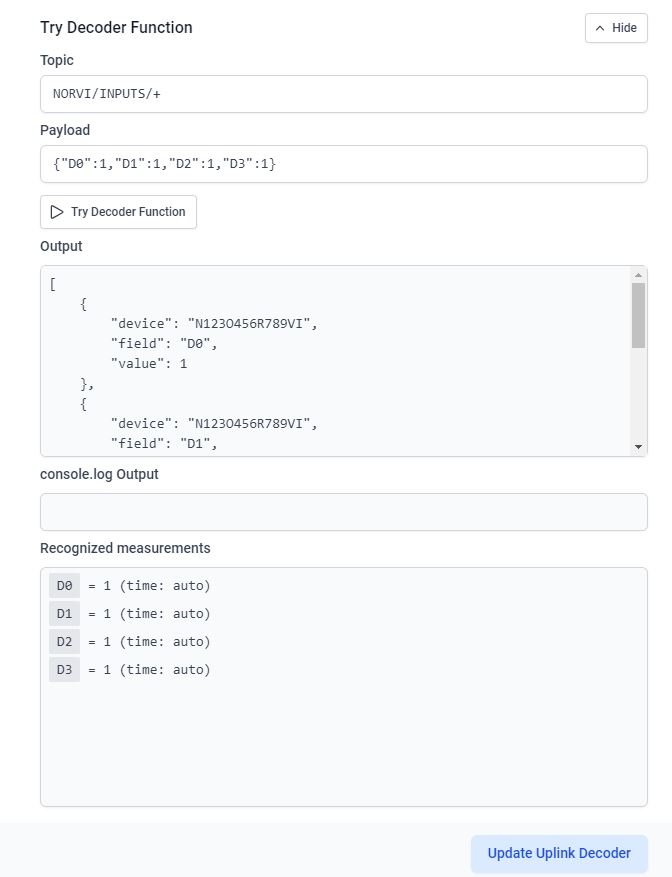 - Subscribes to the MQTT topic “NORVI/+/OUTPUT” with QoS level 0.