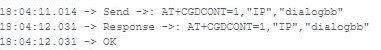 Define PDP Context(AT+CGDCONT=1,”IP”,”dialogbb”)