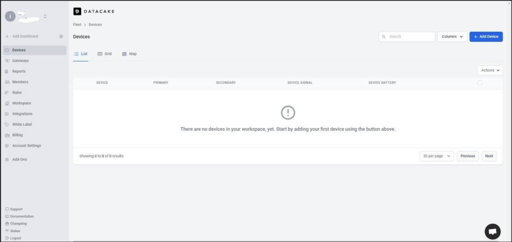 Access the DATACAKE from this link and navigate the Datacake dashboard. Select the “Add Devices”.