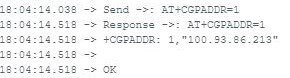 The device has been assigned the IP address 100.93.86.213 for the PDP context 1.