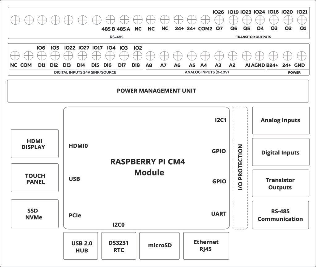 | Inputs and Outputs | 8 x Digital Inputs 8 x Analog Inputs 0-10V 7 x Transistor outputs |