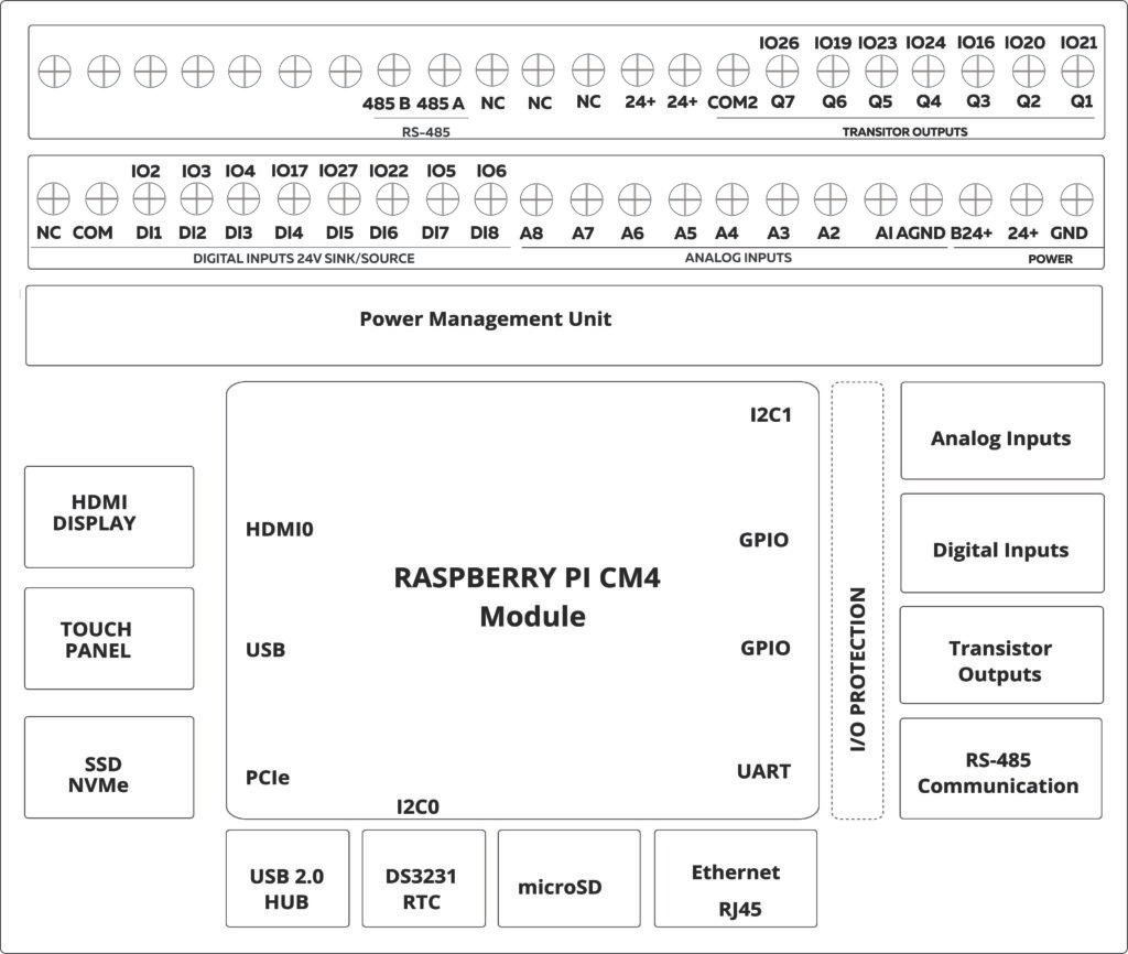 Welcome to the user manual for the RPI-PC-AX8-TO7. The Raspberry Pi HMI is an all-in-one industrial controller based on the powerful Raspberry Pi CM4. It seamlessly integrates a 7-inch touch HMI, PLC functionality, and various connectivity options, making it an ideal solution for IoT applications and industrial gateways.