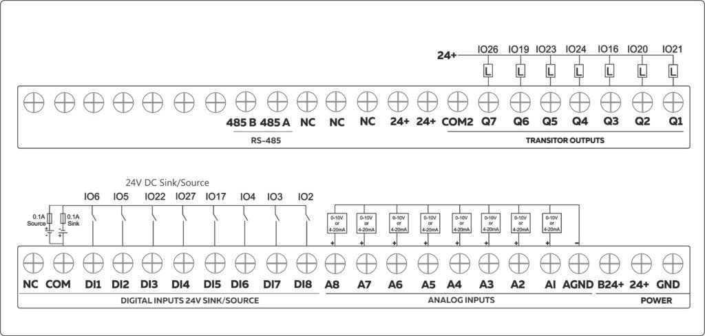 - Digital Inputs, Analog Inputs, and Transistor Outputs