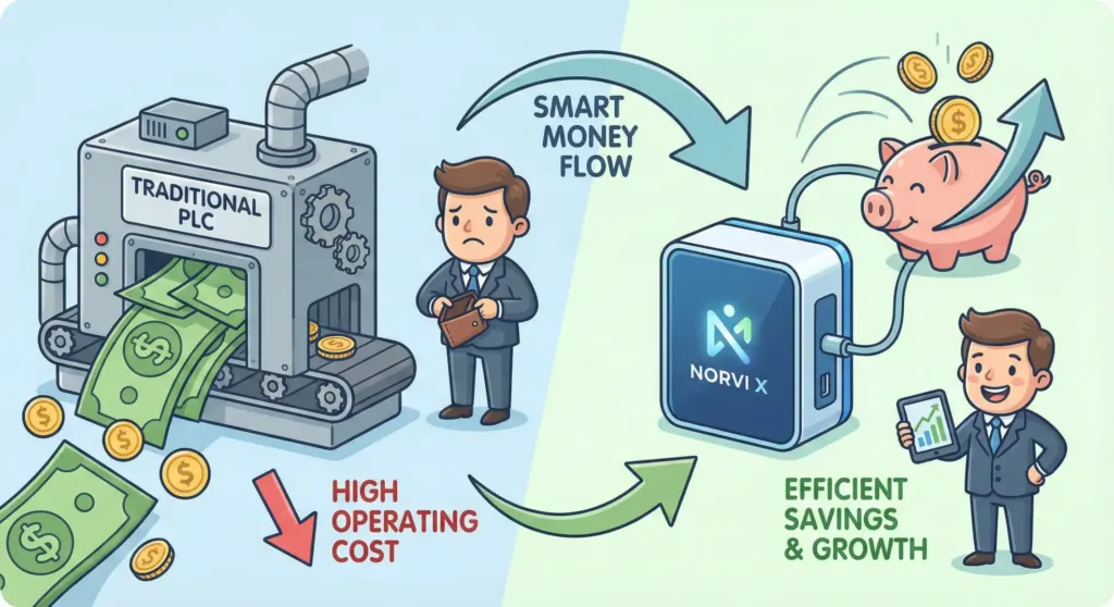The transition from traditional PLC architectures to the modular industrial IoT controller NORVI X delivers proven OEM automation cost savings across multiple dimensions: