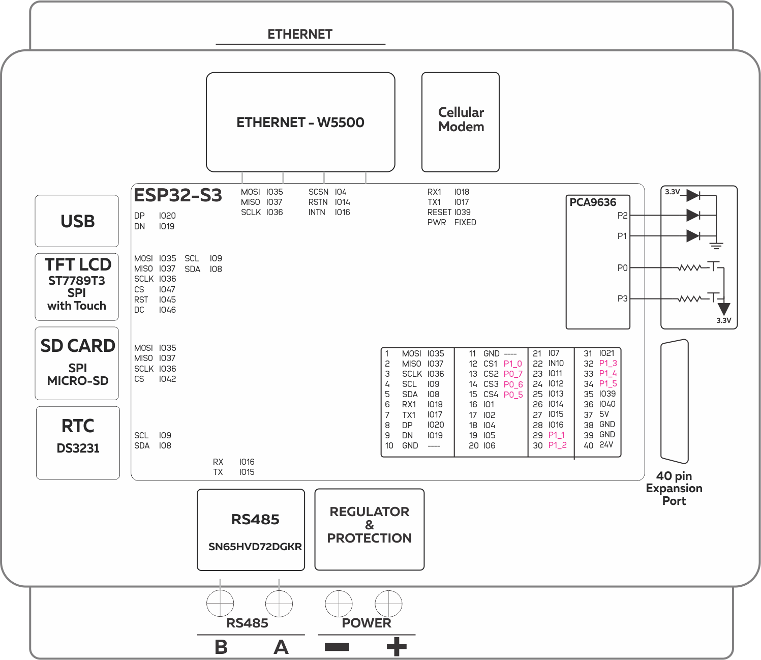 • Expansion Port: Allows connection of dedicated expansion modules via I²C, UART, etc.